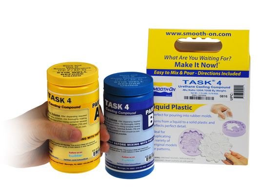 TASK™ 4 is a unique polyurethane casting resin that is very strong when cast in Ultra-Thin sections ranging from (0.075cm to 1.27cm). TASK™ 4 has a very low mixed viscosity, ensuring flawless pick-up of even the finest detail. Cured plastic exhibits very low shrinkage which is why this plastic has become a favorite of prototype and design professionals throughout the world. Pot life is 20 minutes and cure time is 16 hours at 23°C.Vibrant colors and color effects are possible by adding SO-Strong™ color tints. Fully cured models made from TASK™ 4 are tough, durable, machinable and paintable. They resist moisture and mild solvents. Applications for TASK™ 4 include making prototype and architectural models, model toys, durable miniatures, ultra-thin mechanical parts and special effect props.