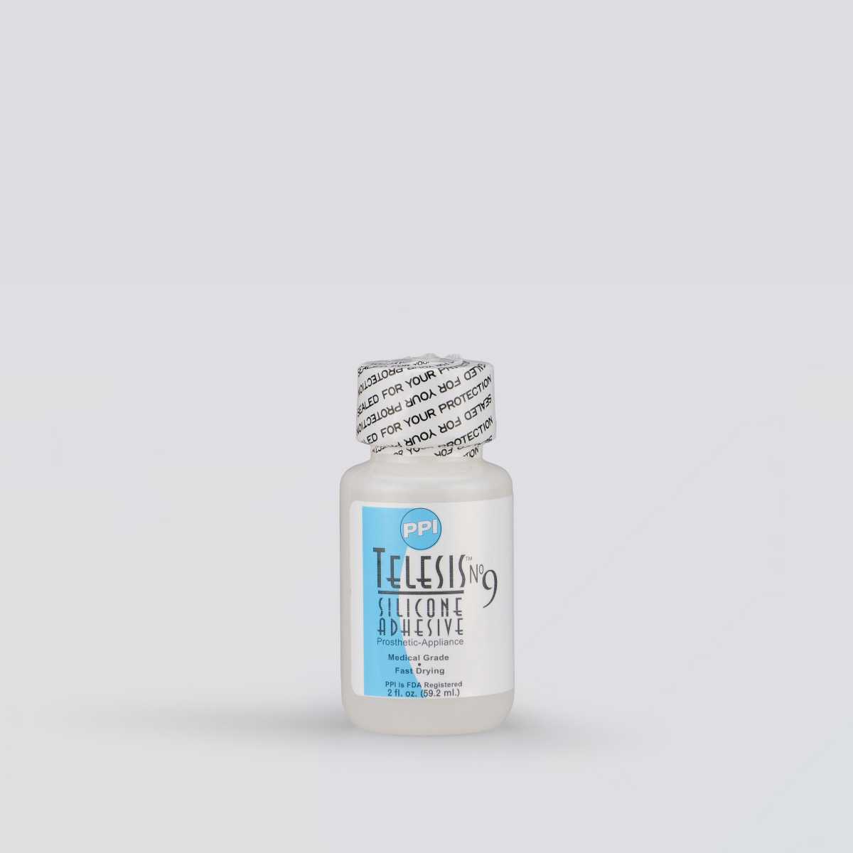 TELESIS #9 SILICONE ADHESIVE is the newest addition to the evolution of the Telesis silicone adhesives line - the most popular and widely used adhesives in the industry today. Telesis #9 is incredibly strong and durable and is the fastest drying adhesive in the Telesis line. When used with the Telesis 9 Thinner the drying time is much faster, giving a working time similar to that of Telesis 5. This is a medical grade, pressure sensitive adhesive, perfect for bonding silicone and latex pieces, especially around the eyes and mouth or other areas that are troublesome to glue down.