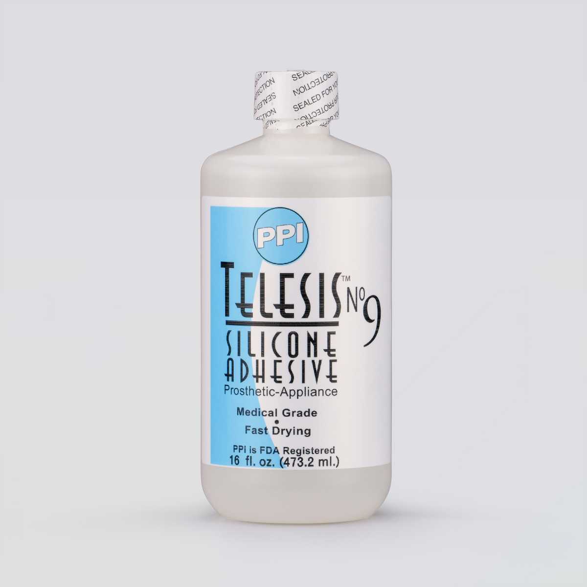TELESIS #9 SILICONE ADHESIVE is the newest addition to the evolution of the Telesis silicone adhesives line - the most popular and widely used adhesives in the industry today. Telesis #9 is incredibly strong and durable and is the fastest drying adhesive in the Telesis line. When used with the Telesis 9 Thinner the drying time is much faster, giving a working time similar to that of Telesis 5. This is a medical grade, pressure sensitive adhesive, perfect for bonding silicone and latex pieces, especially around the eyes and mouth or other areas that are troublesome to glue down.