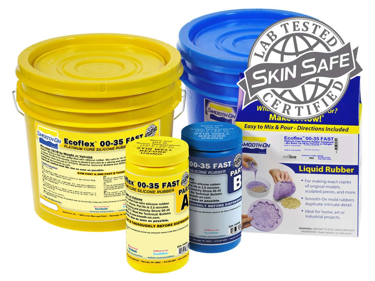 Ecoflex™ 00-35 FAST is een zachte, snel uithardende platina-gekatalyseerde silicone die veelzijdig en gebruiksvriendelijk is. Delen A en B worden 1:1 op gewicht of volume gemengd, de verwerkingstijd is ongeveer 2,5 minuten en het rubber hardt uit in ongeveer 5 minuten bij kamertemperatuur met verwaarloosbare krimp. Lage viscositeit zorgt voor gemakkelijk mengen en gieten.Rubber hardt uit zonder "kleverig" oppervlak, is zeer zacht, zeer sterk en zeer "rekbaar, rekt vele malen zijn oorspronkelijke grootte uit. EcoFlex™ 00-35 is gebroken wit doorschijnend en kan worden gekleurd met Silc Pig™ siliconen kleurpigmenten verkrijgbaar bij FormXGecertificeerd huidveilig - Uitgehard Ecoflex™ 00-35 FAST is huidveilig en is gecertificeerd door een onafhankelijk laboratorium. OESO TG 439-certificering. Bij het testen werden geen dieren gebruikt.Vloeibare Ecoflex™ 00-35 FAST hardt uit tegen de huid en kan worden gebruikt voor levensgiettoepassingen om rubberen mallen te maken die snel uitharden en goed zijn voor het gieten van was, harsen, enz. Ecoflex™ 00-35 FAST kan ook worden gebruikt voor een verscheidenheid aan huidveilige toepassingen, waaronder het maken van snelle, huidveilige apparaten voor speciale effecten en cosplay, demping voor orthopedische en orthesen die op het lichaam worden gedragen en nog veel meer. Ecoflex™ 00-35 FAST kan ook worden gebruikt om snel uithardende rubberen mallen te maken met een hoge rekbaarheid voor het gieten van verschillende materialen.Ecoflex™ 00-35 FAST werktijd: is 2,5 minuten - Uithardingstijd: is 5 minuten - Kleur: Gebroken wit Doorschijnend