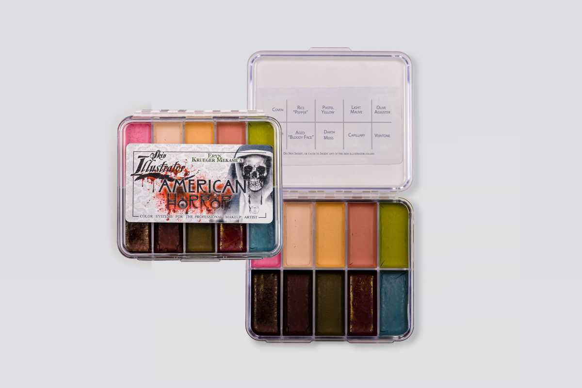 Created for American Horror Story's Makeup Dept. Head, Eryn Krueger Mekash. This unique palette contains two new colors specifically designed by her makeup crew for the AHS series. 'Coven' and 'Assylum' were added to the palette to meet the demanding needs of AHS. From beauty and old age to bloody zombies and witches, the American Horror Palette is an intrigal part of this award winning show.