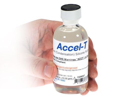Accelerator voor Mold Max 15Tand 27T siliconen - druppelaar 30 ml. Is een 1-component additief dat de uithardingstijd van Smooth-On tin-uithardende siliconenrubberverbindingen, in verhouding tot de toegevoegde hoeveelheid, verkort van een nacht tot enkele uren. Accel-T wordt toegevoegd als een percentage van deel B, voordat deel A wordt toegevoegd.BELANGRIJK: De verwerkingstijd (potlife) wordt drastisch verminderd in verhouding tot de hoeveelheid Accel-T™ die wordt toegevoegd. Ook de viscositeit van het rubber zal toenemen. Mix, vacuüm en giet snel.