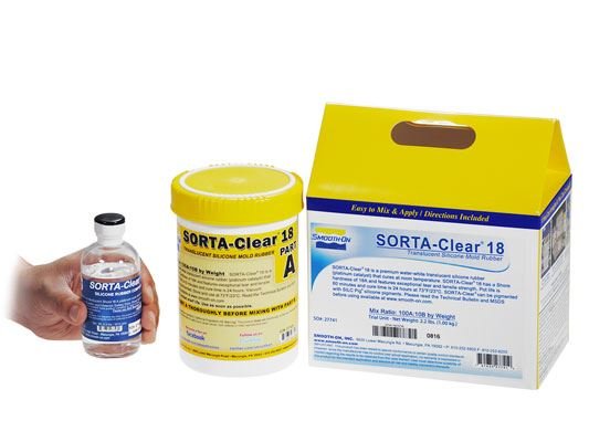 SORTA-Clear™ Serie rubbers zijn waterwitte doorschijnende siliconenrubbers (platinakatalysator) die uitharden bij kamertemperatuur met verwaarloosbare krimp. Dit product vereist een gramschaal voor het meten van onderdelen A + B. SORTA-Clear™ 18 wordt geleverd in Shore 18A hardheid en heeft een hoge trek- en scheursterkte.SORTA-Clear™ siliconen zijn ideaal voor het maken van prototypes, sieraden of andere mallen van elke configuratie waarbij de zichtbaarheid van het model belangrijk is (d.w.z. een model uit de mal halen door middel van snijden). Materialen zoals urethaan, epoxy of polyesterharsen kunnen vervolgens in SORTA-Clear™ siliconen gegoten worden zonder gebruik van een lossingsmiddel. Andere materialen zoals was en laagsmeltende metaallegeringen kunnen ook in SORTA-Clear™ worden gegoten. SORTA-Clear™ kan worden gepigmenteerd met SILC Pig™ siliconenpigmenten.SORTA Clear™ 18 siliconenrubber is VOEDSELVEILIG en kan worden gebruikt voor culinaire toepassingen, waaronder het gieten van chocolade en andere lekkernijen.SORTA-Clear™ 18 is ook huidveilig en gecertificeerd door een onafhankelijk laboratorium.